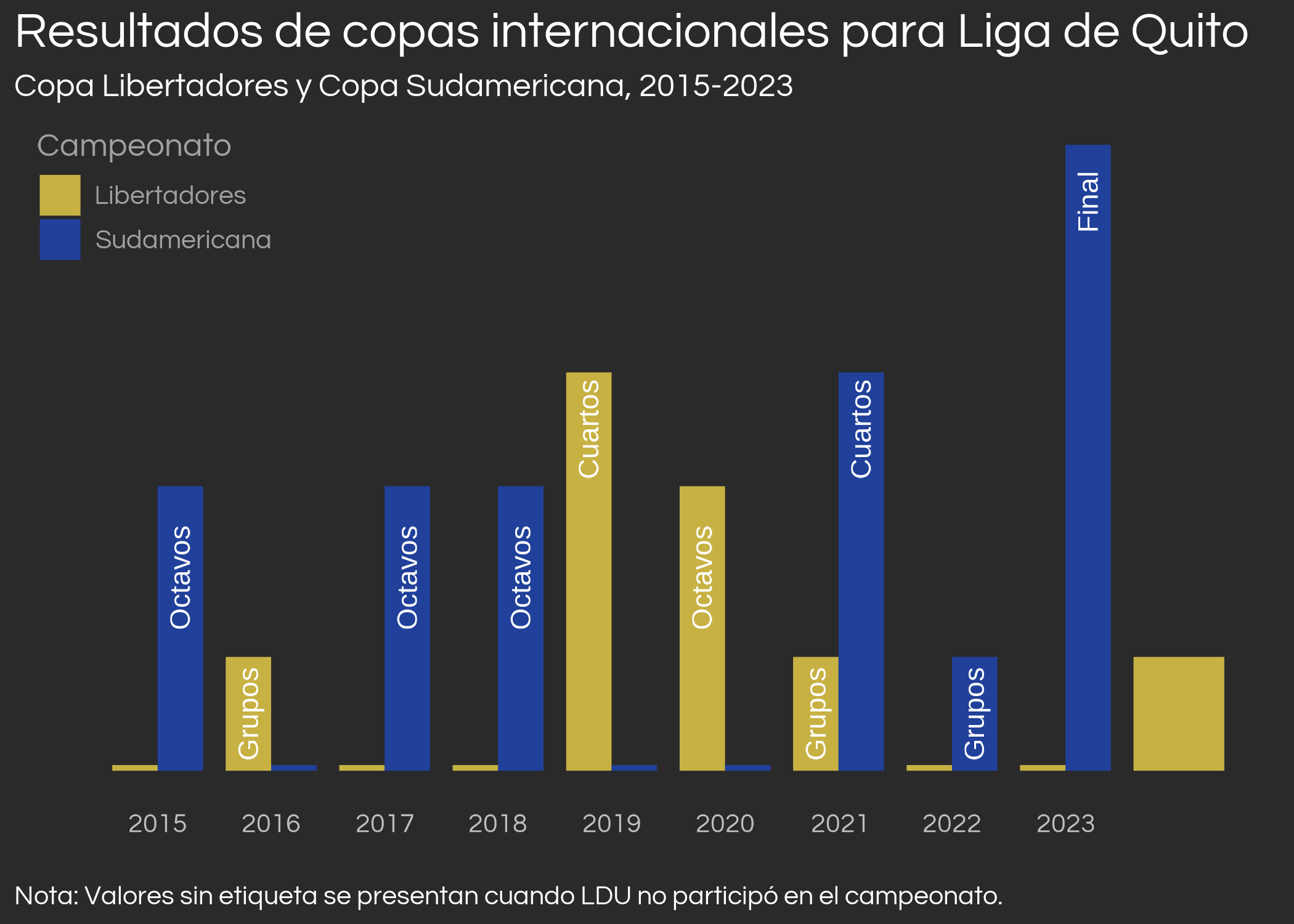 caption = str_wrap('Nota: se presentan goles a favor y en contra solo en casos en donde LDU clasificó y participó en al menos en un partido. Datos de FBref.', 120)) +